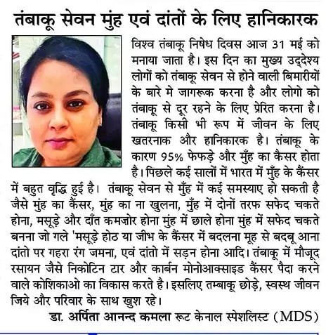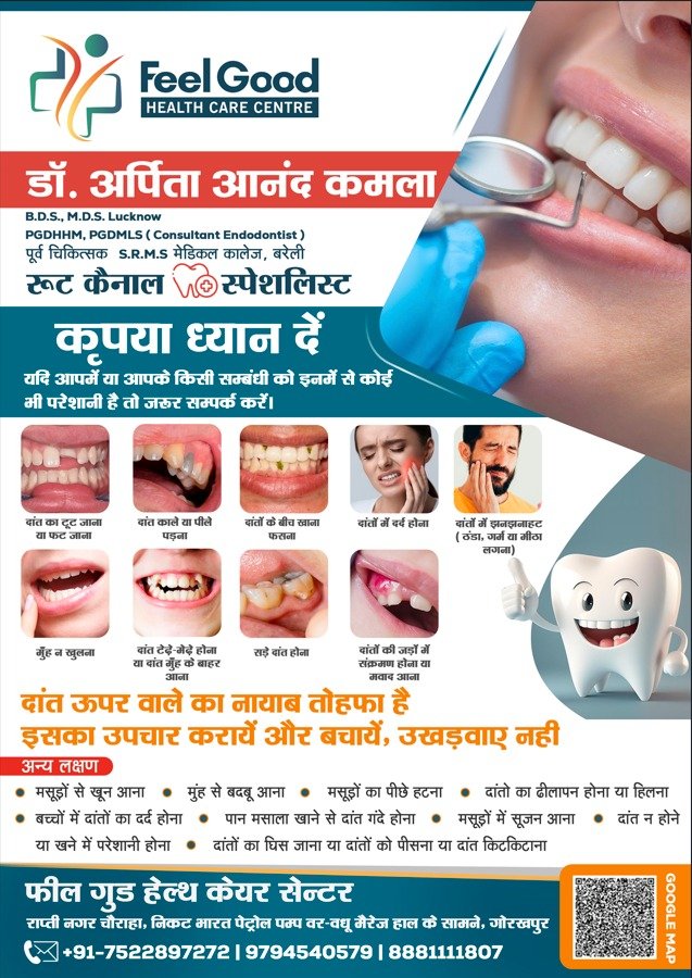 At our clinic, we are dedicated to delivering gentle, personalized, and high-quality dental care for patients of all ages. Led by Dr. Arpita Anand Kamla, one of the best dentists in Gorakhpur, we specialize in painless root canal treatments, tooth extractions, crowns and bridges, dental implants, cosmetic dentistry, and pediatric dental care. We also offer routine scaling and polishing, along with advanced digital X-ray technology for precise, safe diagnosis. Whether you're searching for the best dental clinic near you or looking for a complete smile makeover, our goal is to make every visit comfortable, transparent, and results-driven. Your oral health is our priority.